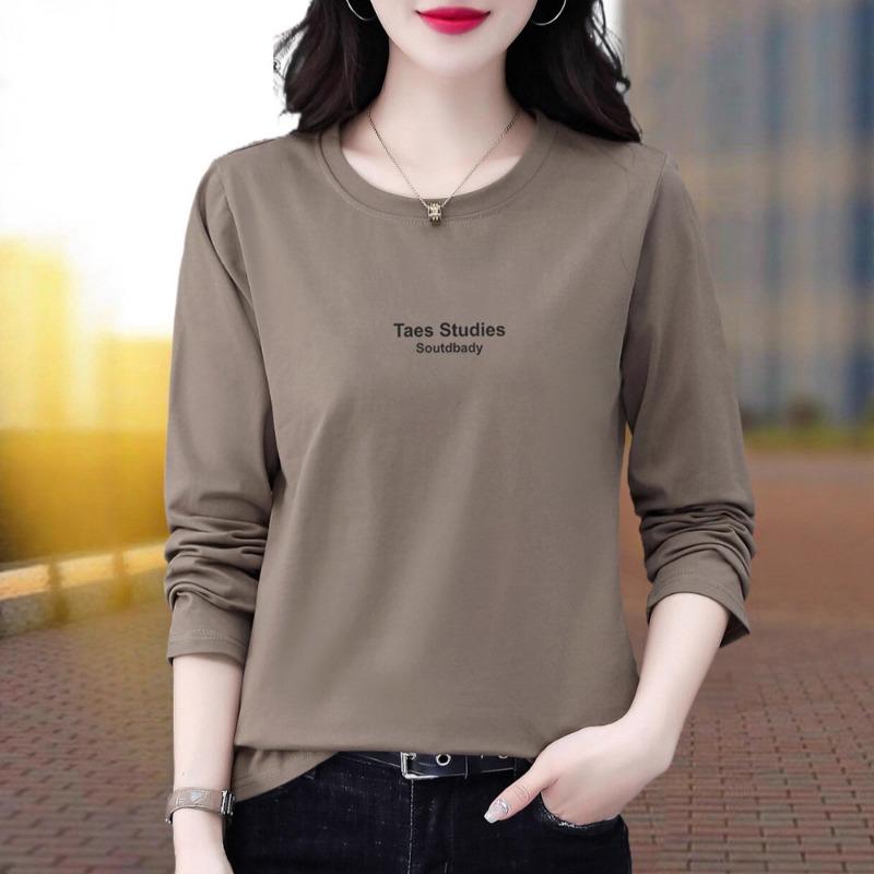 Round Neck Pure Cotton Long-sleeved Women's Spring and Autumn Thin New Loose Bottoming Shirt Top
