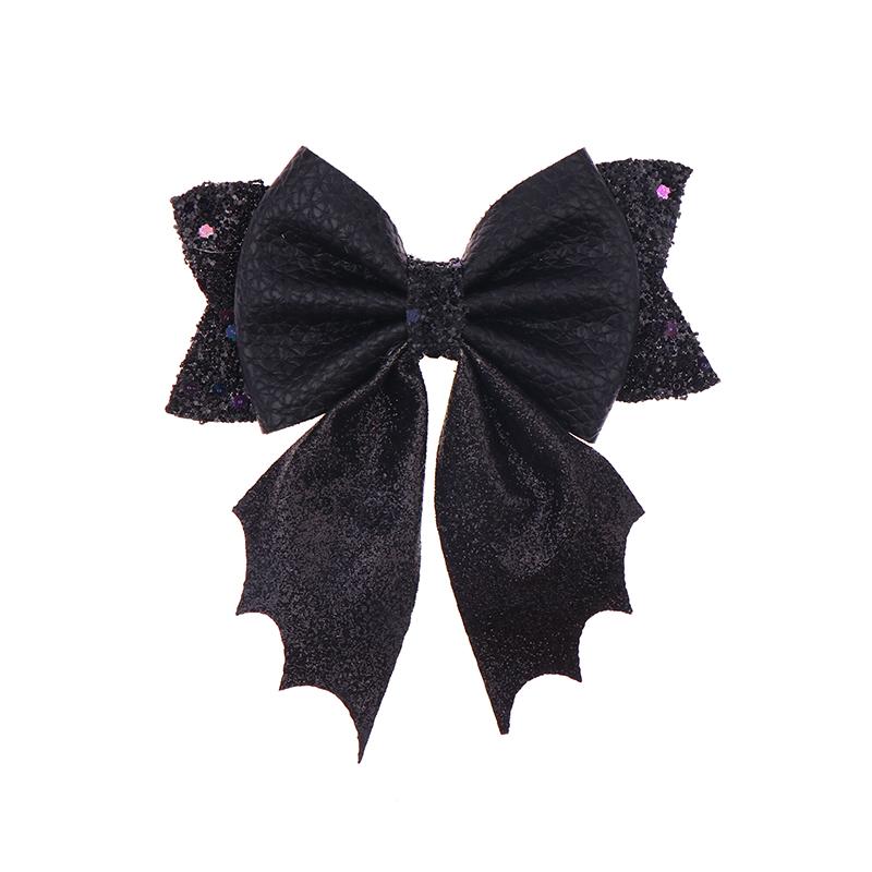 Classical Halloween Festival Girl'S Chunky Leather Bat Hair Bow Clip Wholesale Diy Hair Accessories Headwear Barrette