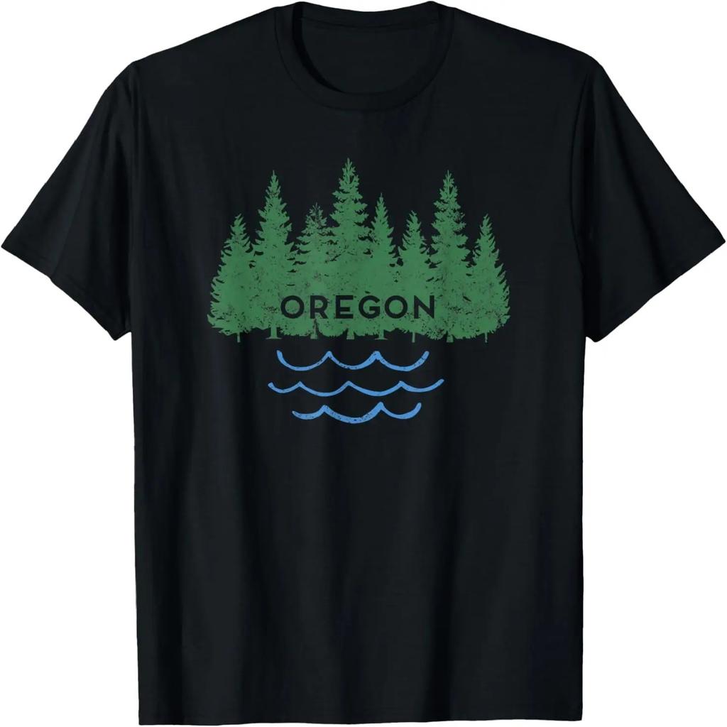 Oregon Trees Silhouette Nature Outdoorsy Men Women Kids T-Shirt