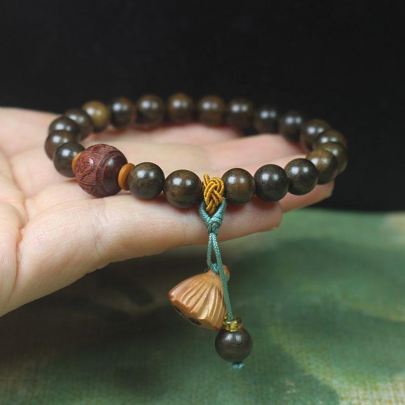 8mm Natural Wood Bead Bracelet Lotus Pendant Men Women Jewelry