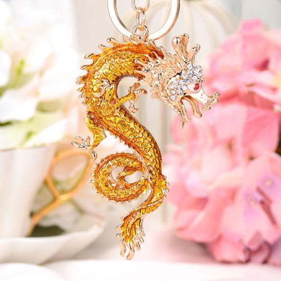 Hochwertige Metalllegierungskonstruktion mit galvanisierter Basis sorgt für außergewöhnliche Haltbarkeit. Der Schlüsselanhänger verfügt über künstliche Pavé-Strasssteine, die durch einen Emaille-Öl-Drip-Prozess gesetzt werden, wodurch eine klare, dreidimensionale Drachenschuppenstruktur entsteht.. Glatte, gratfreie Kanten und eine Anti-Oxidationsbehandlung verhindern das Ausbleichen und den Verlust von Strasssteinen und sorgen für einen strahlenden, langlebigen Glanz.