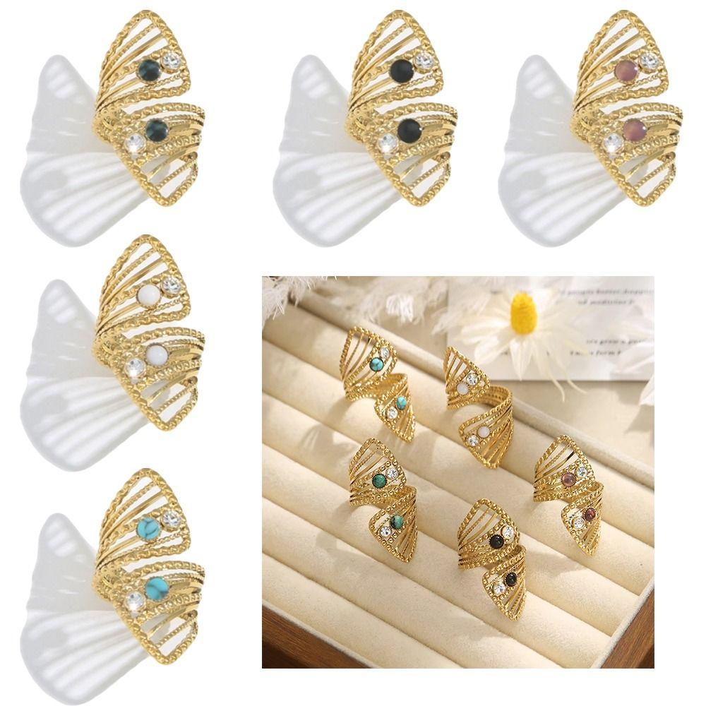 18K Gold Color Adjustable Ring Natural Stone Openwork Ring Hollow Ring Engagement Ring