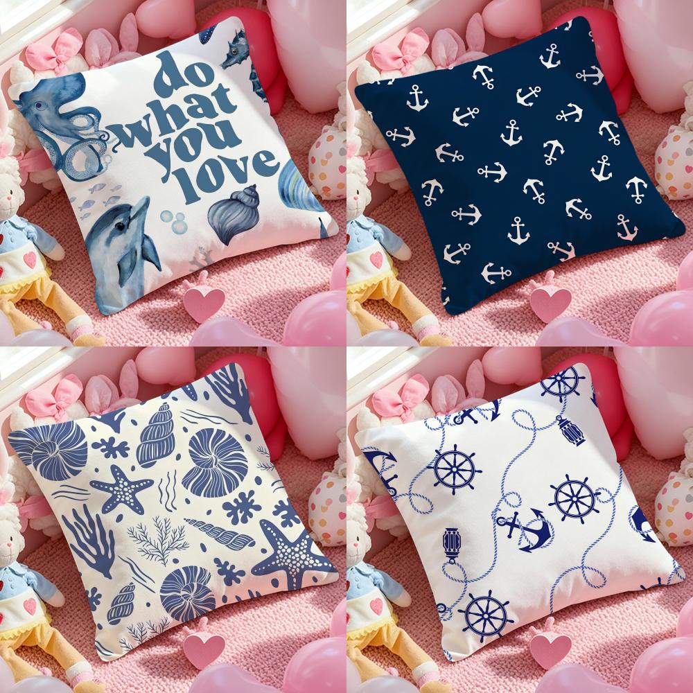 marine theme rudder anchor animals Cushion Cover Antidustmite Pillowcase Invisible zipper silky short plush Sofa cushion cover