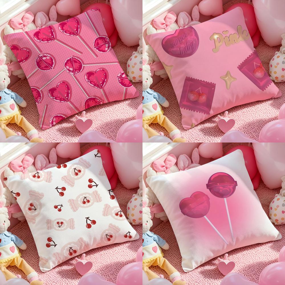 Süße rosa Süßigkeiten Kissenbezug Milbenabweisend Kissenbezug Unsichtbarer Reißverschluss seidiger kurzer Plüsch Sofakissenbezug