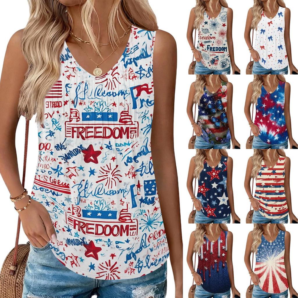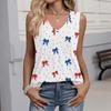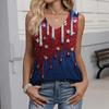 Damenmode Lässig Amerikanische Unabhängigkeitstag Flagge und Sterne Aufdruck V-Ausschnitt Rüschen Ärmellos Weste T-Shirt Top