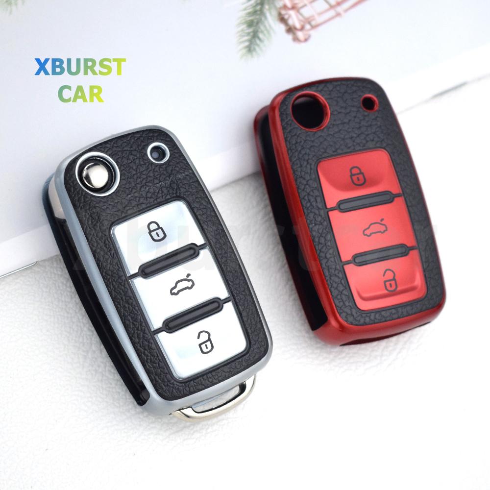 TPU Leather Remote Key Case Cover For VW Golf Polo Bora Beetle Tiguan for SEAT Leon Toledo Altea Ibiza for SKODA Fabia Superb