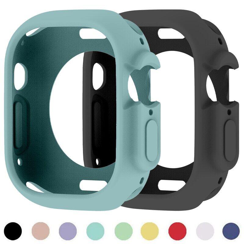 Soft Silicone Case for Apple Watch9 8 Ultra 49MM 45mm Cover Protection For iWatch series 7 6 5 4 SE 40 44 41mm Bumper