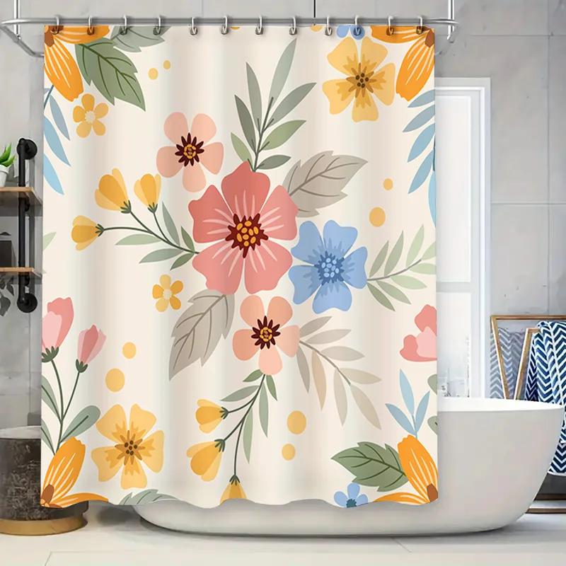 Decorative Shower Curtain Set Floral Print Design for Bathroom Decoration Modern Home Decor Available in Various Sizes