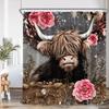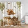 Lustige Badetiere Duschvorhänge Hochlandrinder Kuh Badewanne Druck Badezimmerdekorationen Cartoon Polyester Badvorhang
