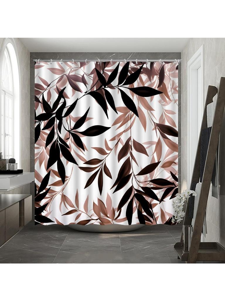 Braun Schwarz Blatt Duschvorhang Aquarell Pflanze Schwarz Weiß Blätter Natur Botanisch Modern Ombre Abstrakt Herbst Badezimmer Dekoration