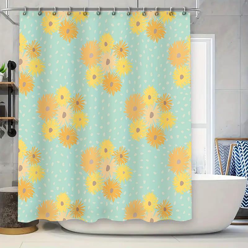 Yellow Blue Shower Curtain Floral Printed Bathroom Decoration for Home Decor Modern Waterproof Fabric Bath Mat Cover Size 72x84