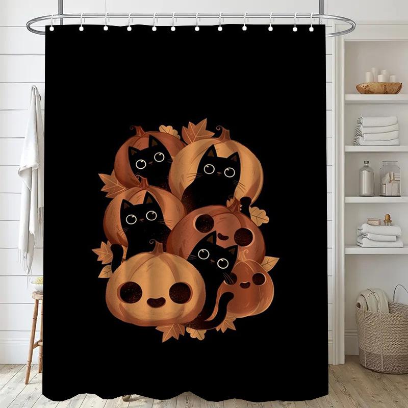 Pumpkin Black Cat Washable Dirt-Resistant Shower Curtain Shower Head waterproof Polyester Bath Curtain For Home Decor