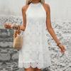 Summer New White Jacquard Halter Neck Sleeveless Dress Sweet Vacation Beach Dress European American Style