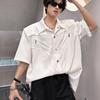 Herren Reißverschlusstasche Oversized Kurzarm Button-Down Hemd Lässiges Streetwear Top