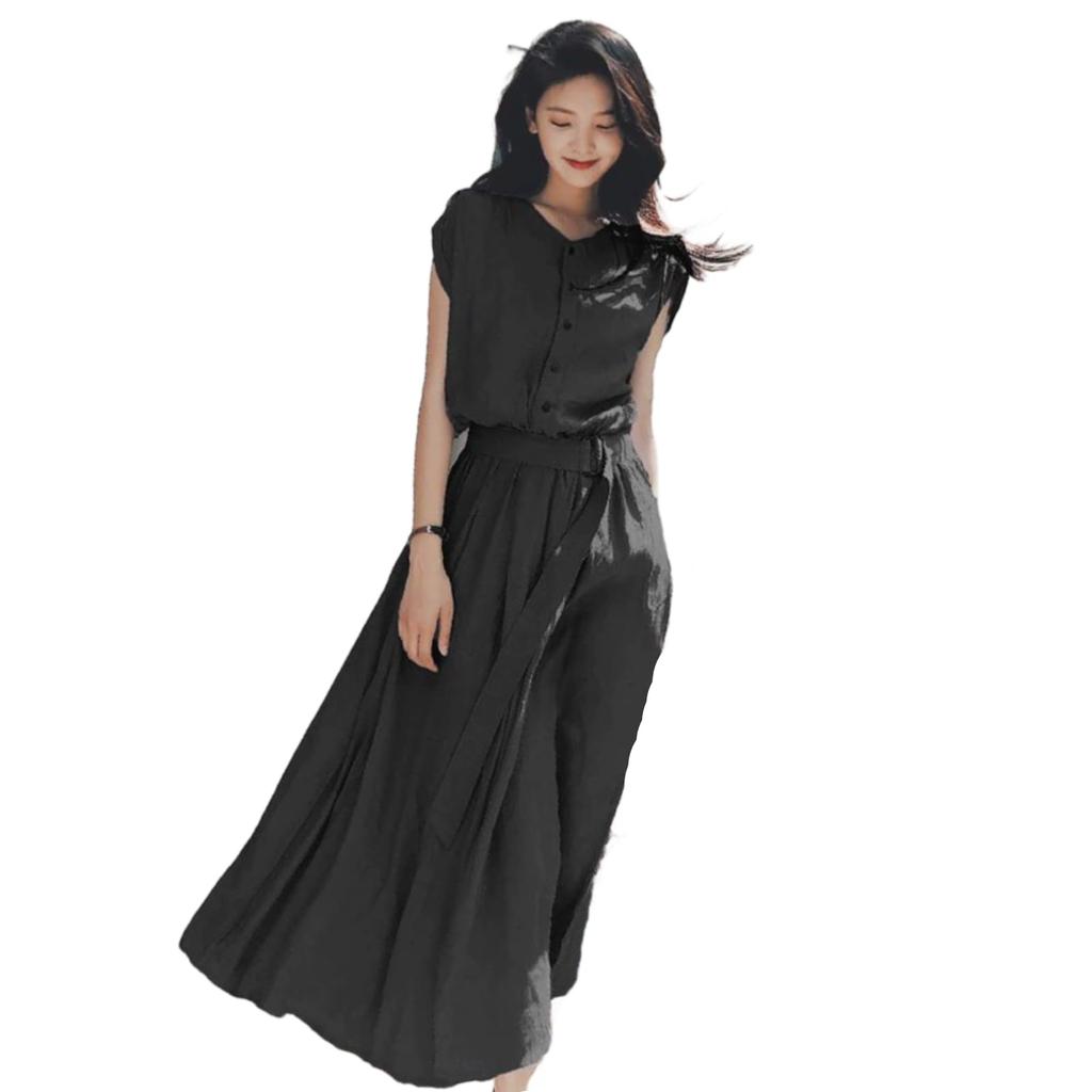 Shirt for Women in their and Elegant Maxi Wedding Slimming Stylish Summer Black [JINJUDUO] Women's Dress, Short-Sleeved Dress, 20s, 30s, 40s, Dress,