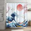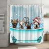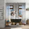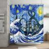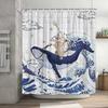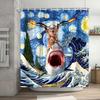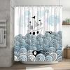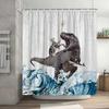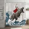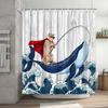 Lustiger Duschvorhang Tapfere Katze Cartoon Duschvorhang Wellen Ozean Dekor Stoff Duschvorhang Set mit Haken Badezimmerdekoration