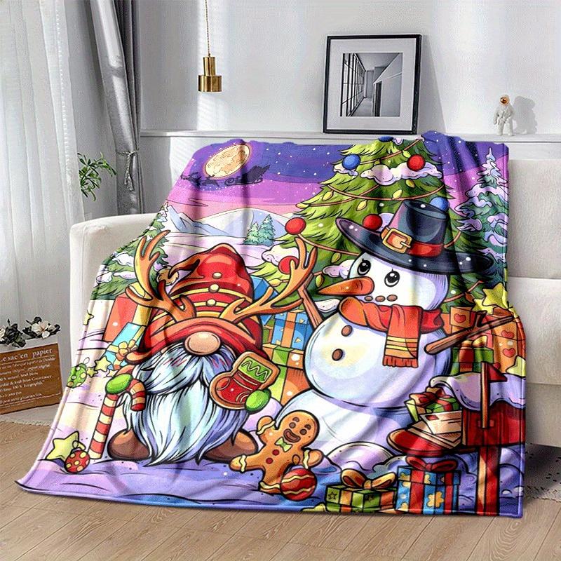1 Stück Weihnachts-Schneemann-Druck Leichte Flanelldecke, Bequeme und Warme Decke, für Camping Sofa Bett und Couch Büro, Geschenkdecken in Alle