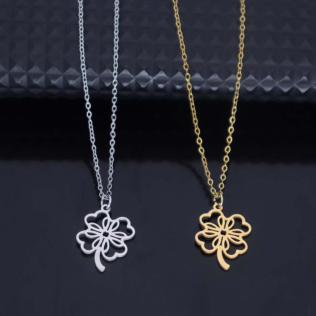 Stainless Steel Hollow Four-Leaf Clover Pendant Necklace for Women