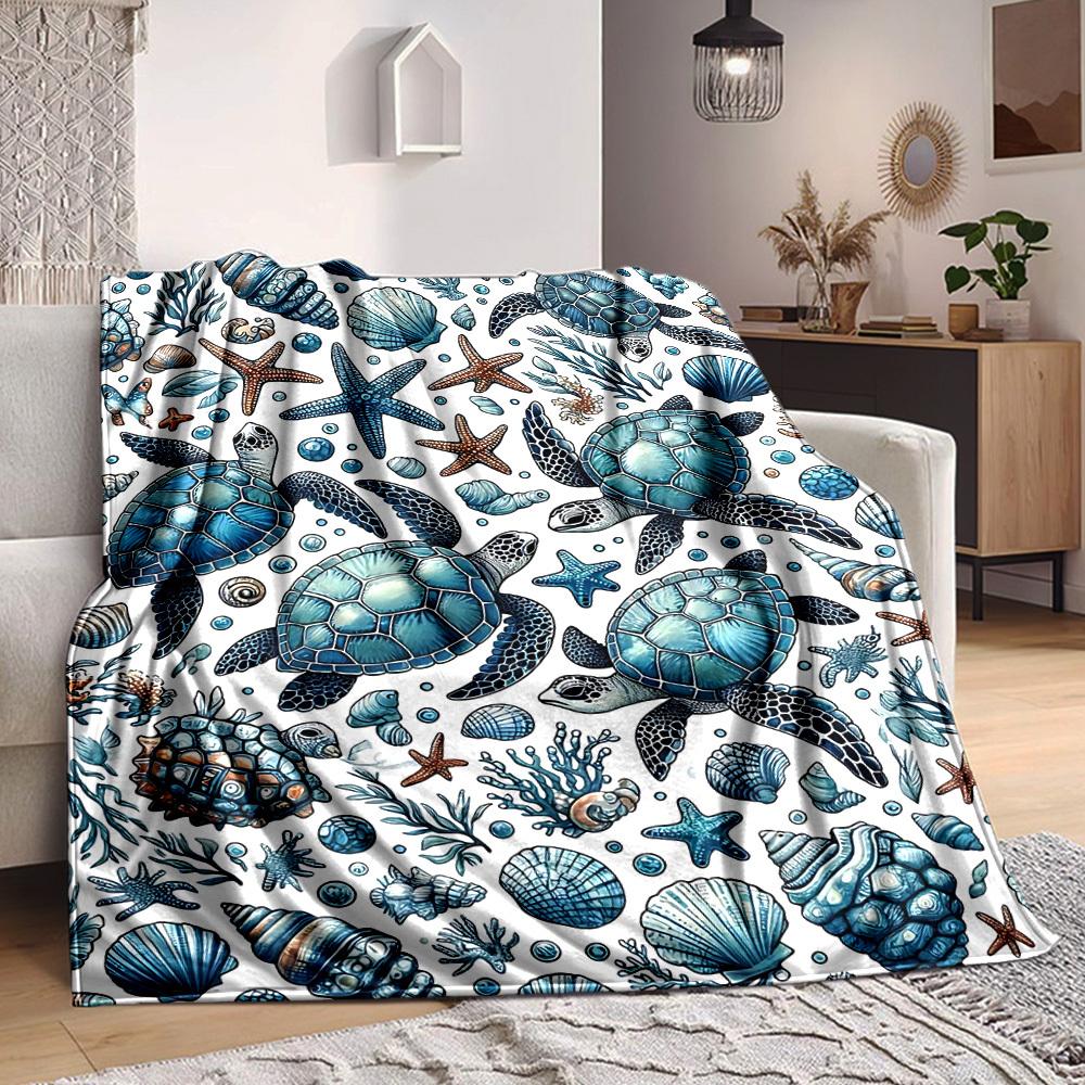 1 Stück Decke mit Meeresschildkrötenmuster, Warm, Gemütlich und Weich, Geeignet für Sofas, Betten, Autos und Büronutzung. Perfekt für Camping und Reisen, was sie zu einer großartigen