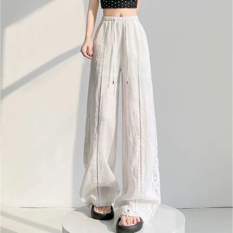 Sommer Damen Weiß Spitze Weiter Bein Locker Lässig Hosen