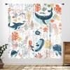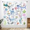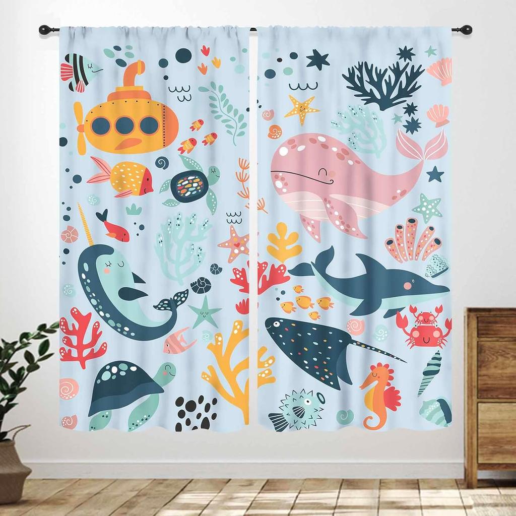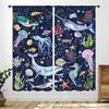 Blue Curtains Kids Room Cartoon Underwater Animals Sharks Turtles Nature Marine Plants Window Drapery Treatments Curtain Polyester Washable Children's