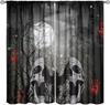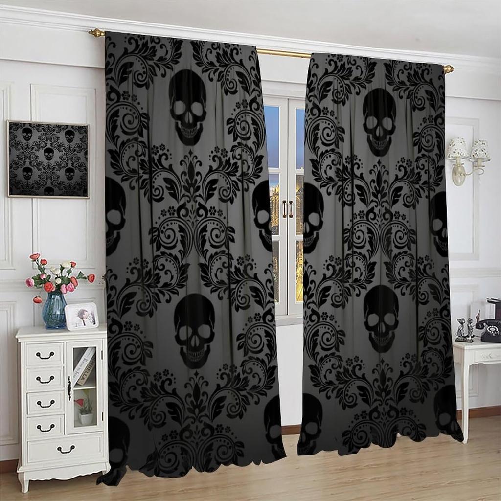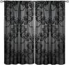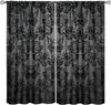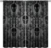 Gothic Black Damask Curtain Vintage Floral Exotic Suger Skull Window Treatments Bedroom Bone Skeleton Antique Bohemian Polyester Washable Ready