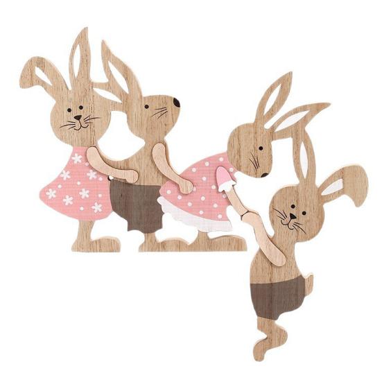 Gefertigt aus poliertem Massivholz, das seine natürliche Maserung zeigt, besticht diese rustikale und frische Dekoration durch eine entzückende Hasenfamilie, die perfekt den Frühlingsgeist einfängt.. Ideal für Häuser im nordischen, ländlichen und Waldstil, verleiht es jedem Raum eine verspielte und heilende Note.. Perfekt für Zuhause, Hof, Balkon, Garten oder Fensterbank, dieses kreative Holzhandwerk dient sowohl als Sammlerstück als auch als entzückendes saisonales Ornament.