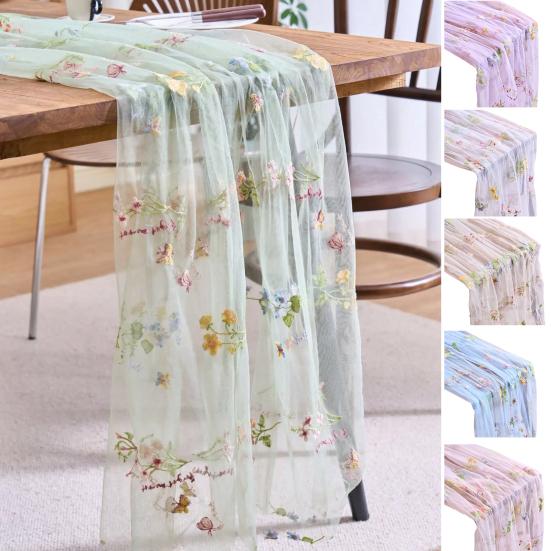 Elegantes gesticktes Design: Dieser Tischläufer besteht aus durchsichtigem Polyester-Tüll, der mit farbenfrohen Blumen- und Schmetterlingsstickereien verziert ist und so ein raffiniertes und charmantes Mittelstück bildet.. Seine filigranen Details werten jede Essenssituation auf und machen es perfekt, um Gäste zu beeindrucken und Ihre Wohnkultur mit einem Hauch künstlerischer Eleganz zu bereichern.