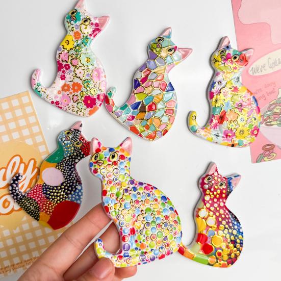 This high-quality refrigerator magnet features a smooth, delicate surface with bright, long-lasting colors that resist fading, ensuring durability for everyday use. Its creative cat-shaped design boasts rich, three-dimensional details and colorful filling, adding a fun and charming touch to your kitchen or any magnetic surface.