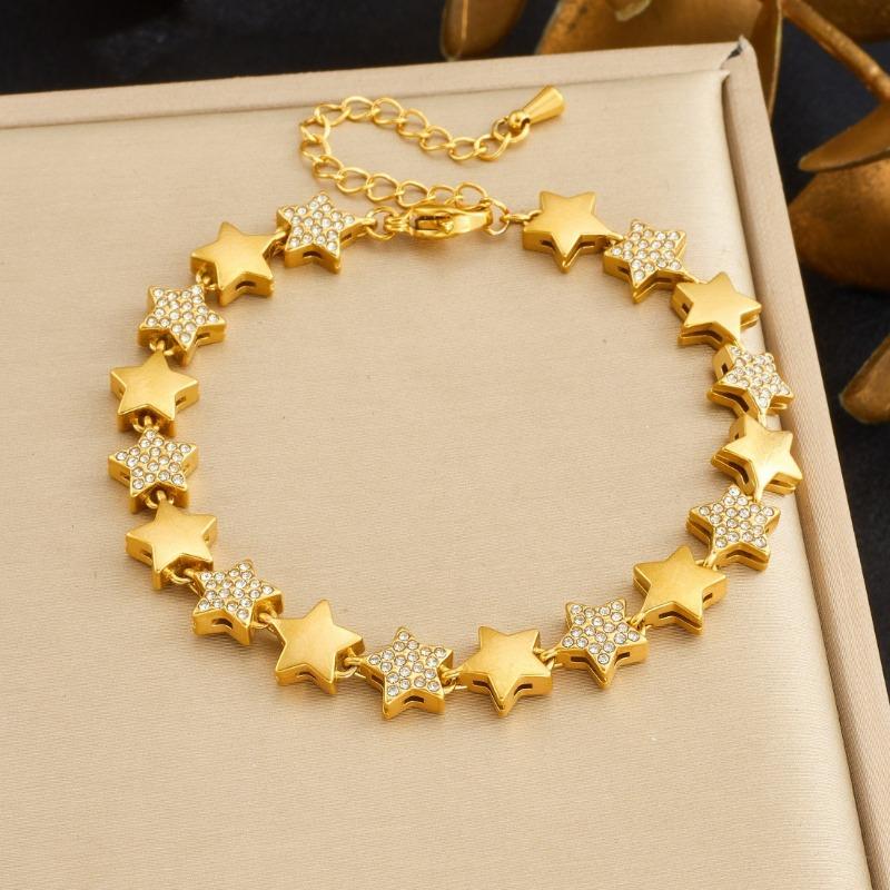 Vergoldetes Wende-Stern-Charms-Armband mit Zirkonia-Pavé, klobige verstellbare Kette für Damen, Y2K Streetwear Schmuck