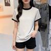 Two-tone round-neck short-sleeve t-shirt for women, 2026 new summer base shirt, slim-fit short top