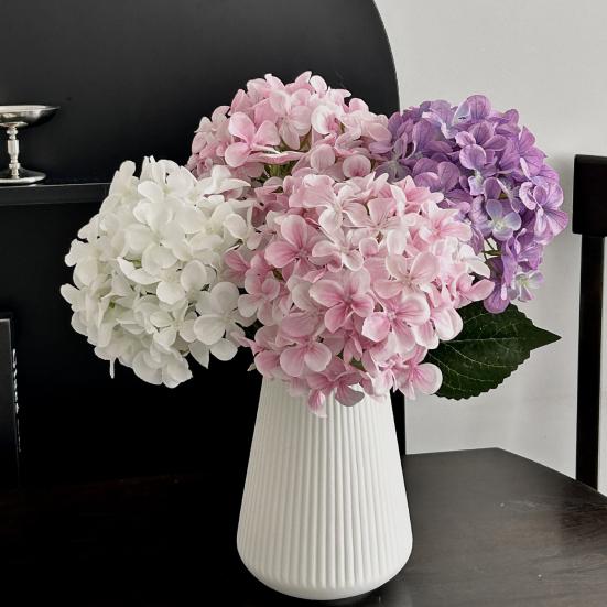 4 Stück künstliche Hortensienblüten groß lebensecht Kunstseide Hortensien mit Stiel Volle künstliche Blumenanordnung für Tischmittelstück Hochzeitsparty Zuhause