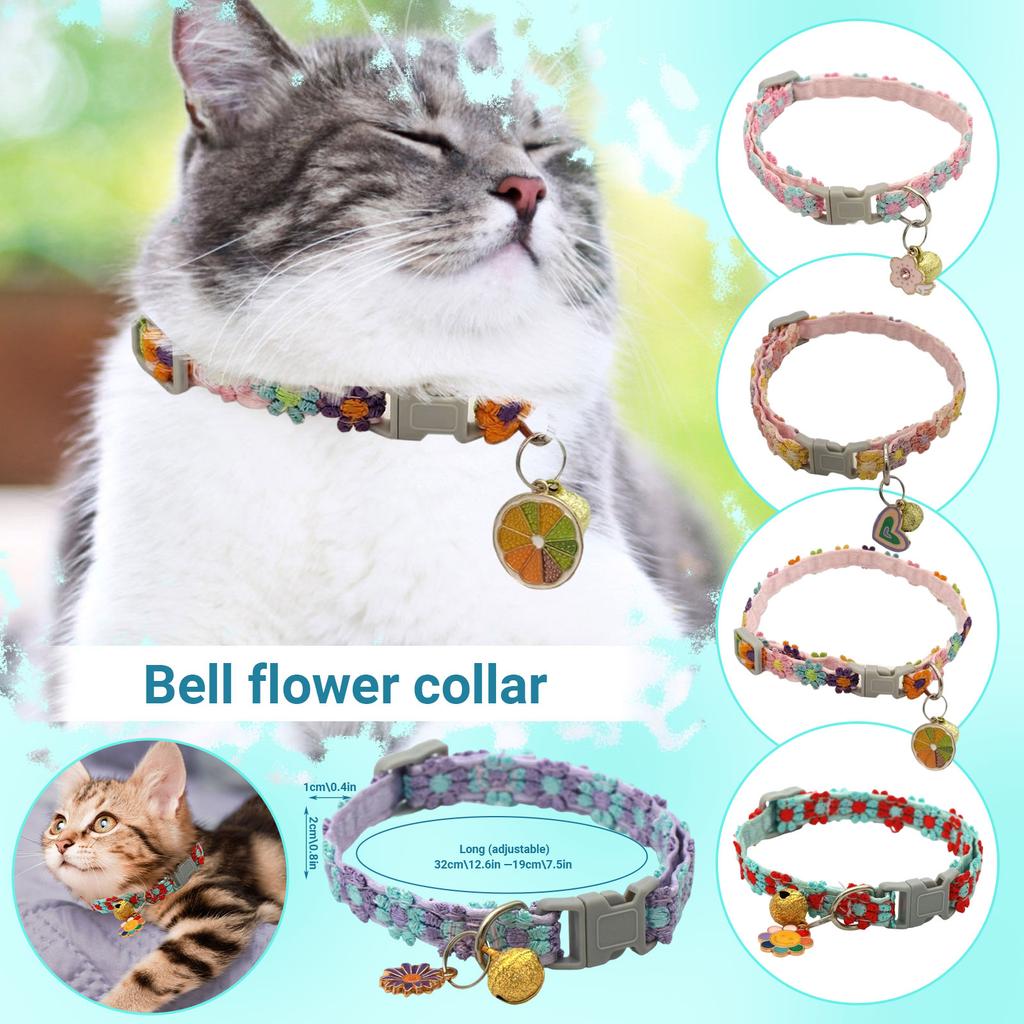 Bunter Spitzblumenkragen mit Glöckchen und Hundehalsband