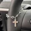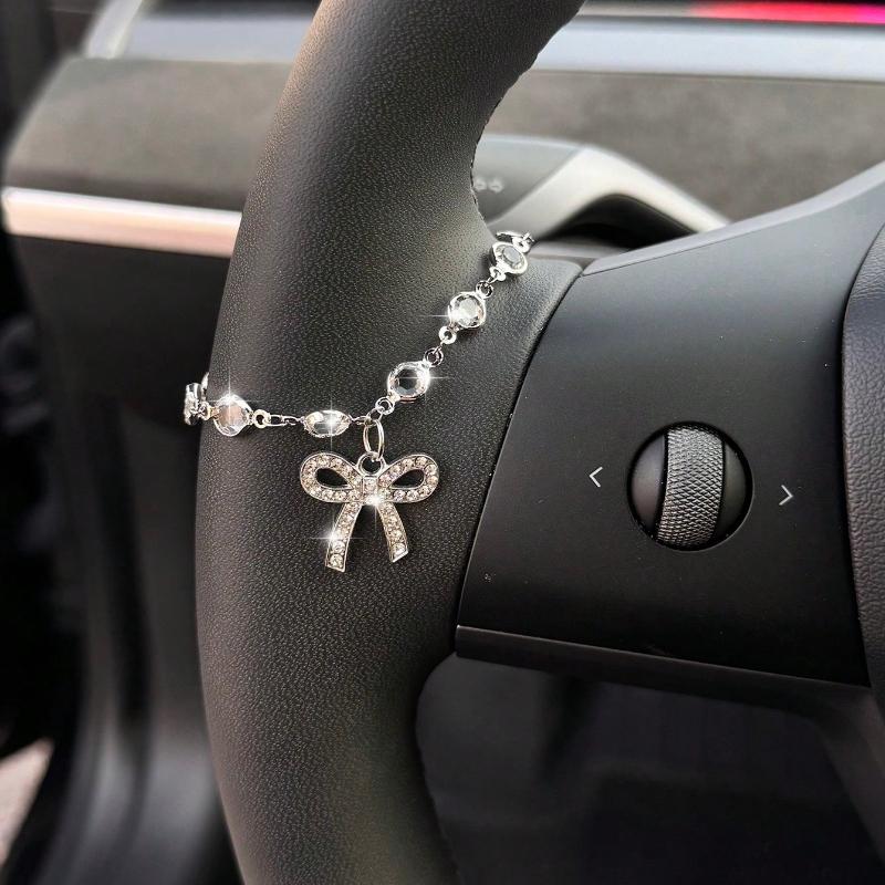 1pc Shiny Rhinestone Bow Heart Shaped Silver Chain Car Steering Wheel Decor For Women