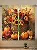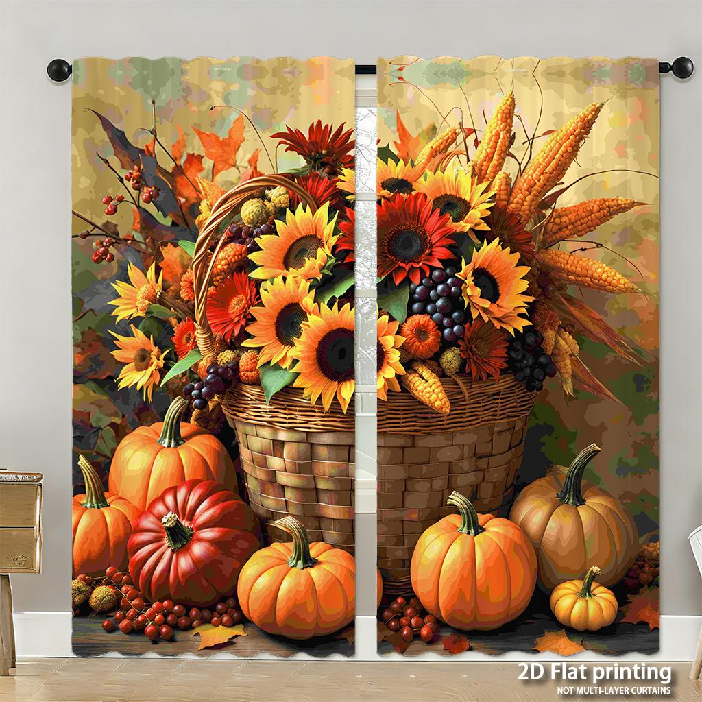 Stück Set Hochauflösende Digital Gedruckte VorhängeHerbstbuntÖlgemäldeStilKürbisBlumeKorbHeimDekorationsstilVorhang Hergestellt Aus Polyester