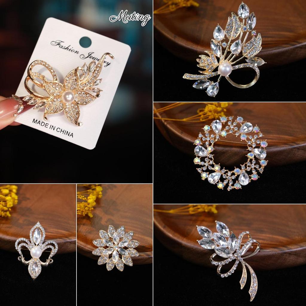 Elegante Europäische & Amerikanische Strassblumen Brosche, Anti-Exposition Pin, Damen Mode Kristall Kleidung Accessoire