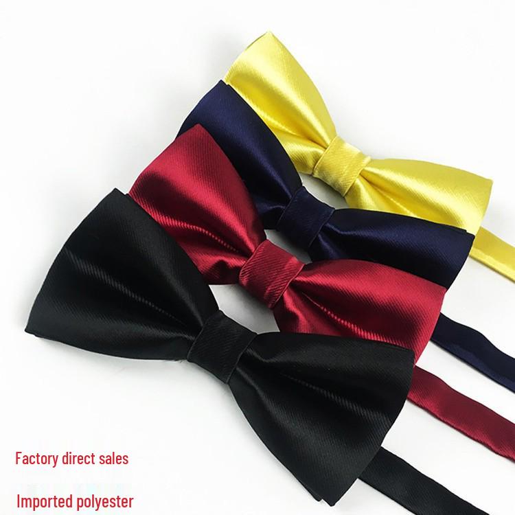 Men's Solid Color Double Layer Bow Tie - Poly Silk, Korean & British Style, Red/Black, Wedding & Best Man Accessory.