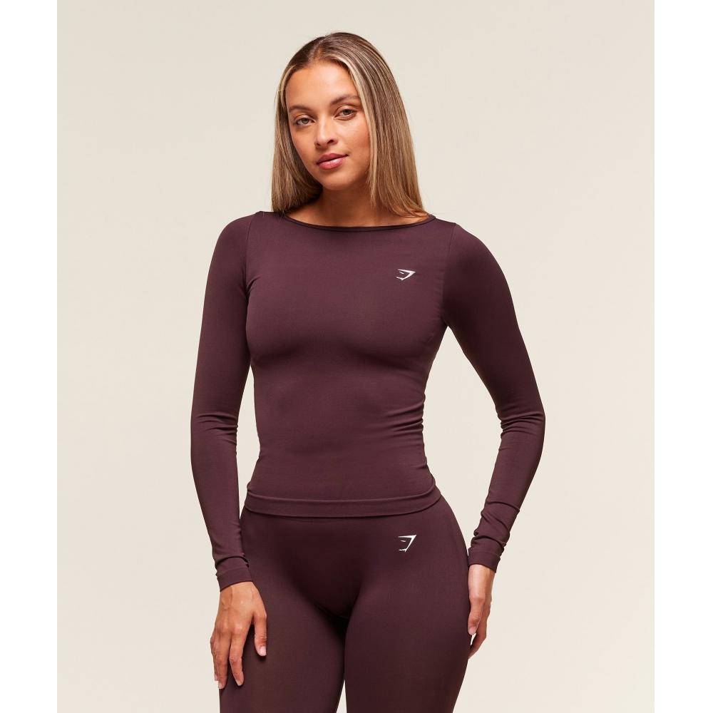 Gymshark Everyday Seamless Wide Neck Long Sleeve Top Cherry Purple B5b5f Pcds