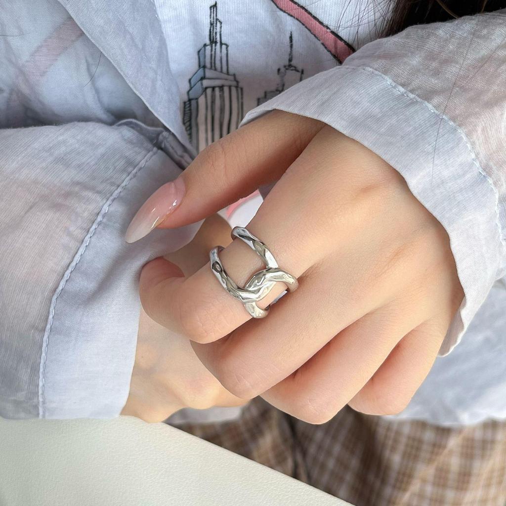 Doppelring Verflochtenes Knoten Geometrisch Minimalistisch Fingerring