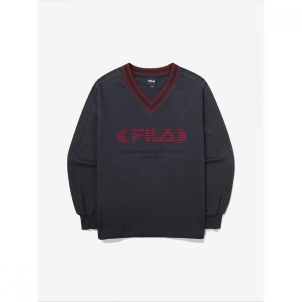 The Fila 2-Choice V-Neck Logo Sweatshirt FS2POG3151F is a women's sportswear upper, designed as a long-sleeve t-shirt with a V-neck style. It features a short length and a comfortable fit that does not cling to the body, providing a pleasant wearing experience. The main material is a blended sweat fabric of cotton and polyester that boasts a soft touch and excellent shape stability. This product can be worn from early autumn and is suitable for outdoor activities, offering durability and comfort. The logo detail adds a point of interest, combining casualness with brand sensibility.