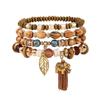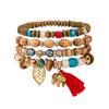 Boho Beaded Tree Leaf & Elephant Pendant Layered Tassel Bracelet