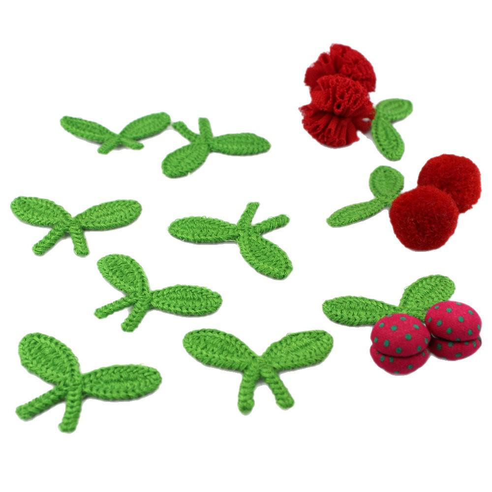 Green Leaves & Cherry Pompom Embroidered Rope Bag - Perfect for Clothing and Hair DIY Accessories