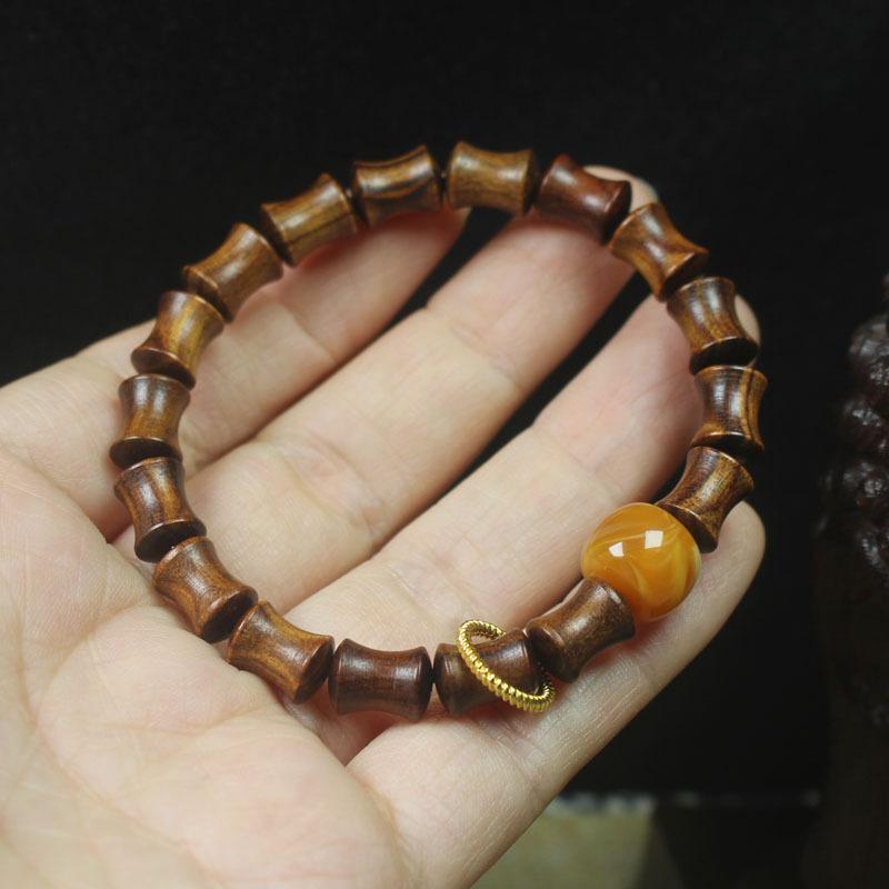 Black Rosewood Bamboo Joint 7*9 Bracelet Sliding Ring Style Wooden Buddhist Literary Jewelry