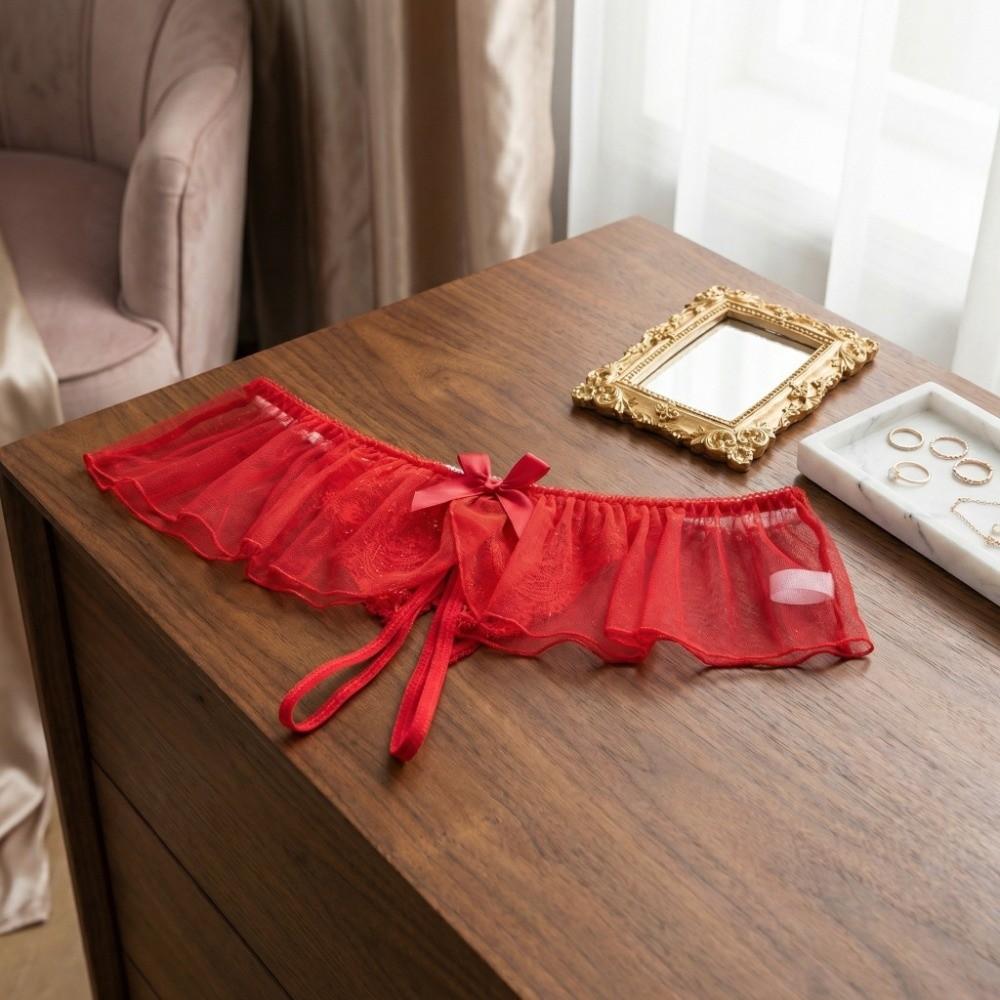 Sparkling Skirt Decor Lace Mesh Women Thong Low Waist T-Back Panties Wedding Night Bride