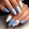 Fresh Blue & White Gradient Short Square Detachable False Nails with Irregular Lines