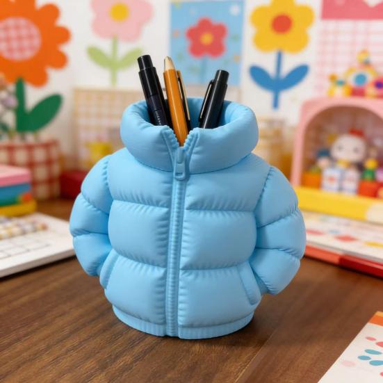 Einzigartiger Daunenjacken-Stil: Gefertigt, um eine gemütliche Winter-Daunenjacke nachzuahmen, verfügt dieses Federmäppchen über wölbende gesteppte Karomuster, dreidimensionale Revers und eine Mini-Reißverschlussdekoration.. Der abnehmbare Kragen aus Kunstpelz verleiht einen zusätzlichen Hauch von Charme.. Dieses unverwechselbare Design verwandelt einen einfachen Aufbewahrungsgegenstand in ein entzückendes Schreibtischornament, das jeden Arbeitsplatz aufhellt.