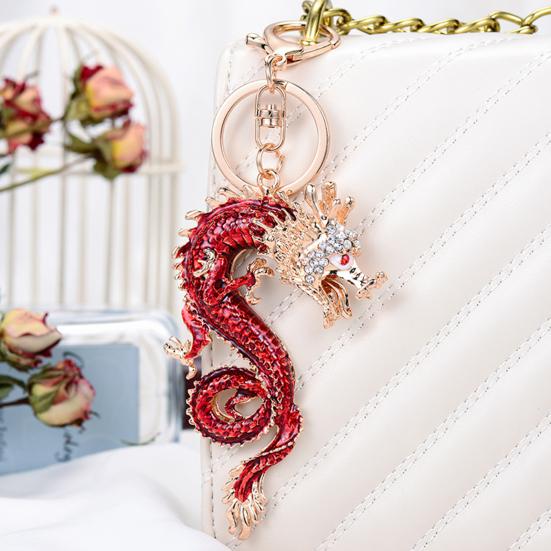 Dieser exquisite Drachen-Schlüsselanhänger verfügt über eine galvanisch beschichtete Legierungsbasis, verziert mit künstlichen Pavé-Strasssteinen und einem detailreichen Emaille-Öl-Tropf-Finish.. Die klare, dreidimensionale Drachenschuppenstruktur und die glatten, gratfreien Kanten unterstreichen die überlegene Handwerkskunst..