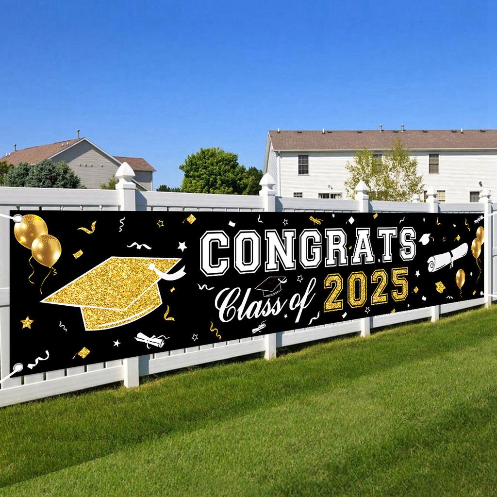 Herzlichen Glückwunsch Abschlussjahrgang 2025 Polyester Hängebanner Abschlusssaison Partydeko Outdoor Abschlusszeremonie Partyzubehör