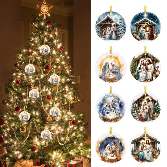 Krippennacht Ornament Rund Acryl Geburt Jesu Christi Hängende Dekoration Religiöses Thema Weihnachtsandenken für Winter Weihnachtsbaumdeko