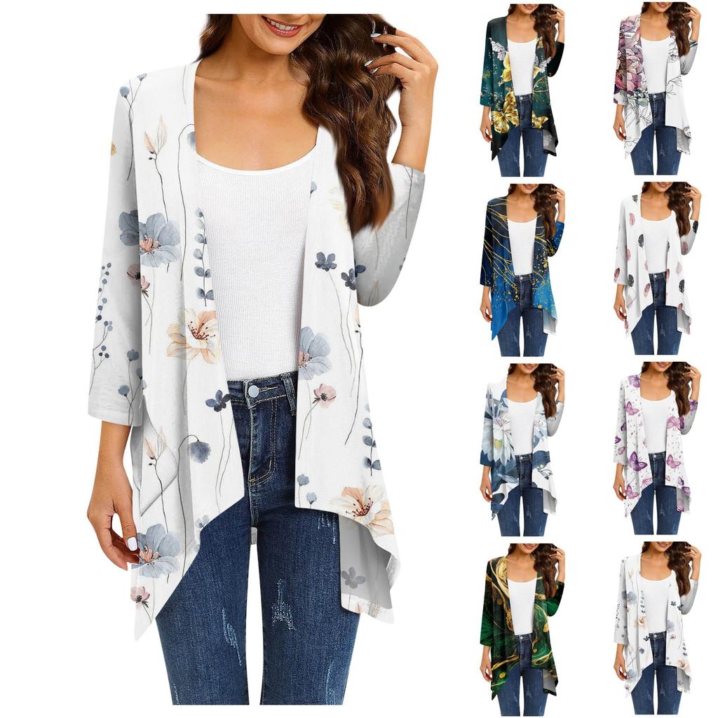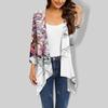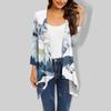 Women's Floral Print Irregular Three-quarter Sleeve Cardigan With Pocket Jacket